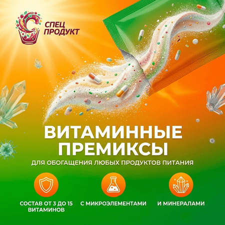 Витаминные премиксы для обогащения продуктов питания с составом от 3 витаминов до 15, а так же микроэлементов и минералов для обогащения любых продуктов питания готовые и под заказ.
